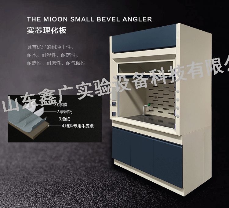 5、下柜體:臺面采用實芯理化板(12.7mm厚)耐酸堿,耐沖擊,耐腐蝕,甲醛達到E1級別標準,背面具有不可磨滅背標。