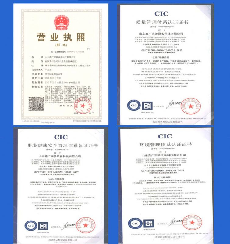 山東鑫廣實(shí)驗(yàn)設(shè)備科技有限公司成立于2007年,作為實(shí)驗(yàn)室整體解決方案服務(wù)商,提供從實(shí)驗(yàn)室設(shè)計(jì)、實(shí)驗(yàn)室工程、實(shí)驗(yàn)室家具、實(shí)驗(yàn)室設(shè)備、實(shí)驗(yàn)室耗材、到實(shí)驗(yàn)室服務(wù)等實(shí)驗(yàn)室建造一站式服務(wù),致力于專業(yè)研發(fā)、設(shè)計(jì)、生產(chǎn)實(shí)驗(yàn)室家具等產(chǎn)品及相關(guān)配套設(shè)備,并提供實(shí)驗(yàn)室建設(shè)全套解決方案的新型高科技企業(yè)。公司下設(shè)研發(fā)生產(chǎn)車間、營(yíng)銷服務(wù)中心,在全國(guó)拓展分銷網(wǎng)絡(luò)和辦事處,為客戶提供更專業(yè)、優(yōu)質(zhì)的產(chǎn)品和服務(wù)。我公司有嚴(yán)格的管理制度與規(guī)章制度,并且通過了GB/T19001-2000質(zhì)量管理體系認(rèn)證和GB/T24001-2004環(huán)境管理體系認(rèn)證。